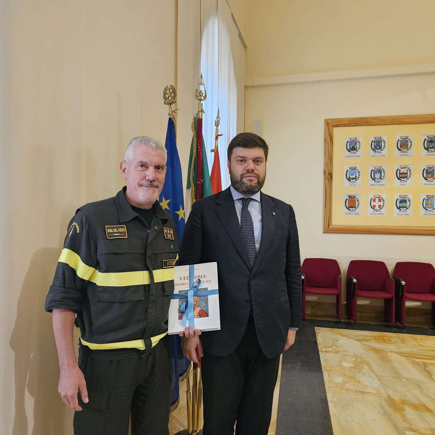 Dopo una visita della sede dell’amministrazione provinciale viterbese, il Presidente Romoli e il Comandante Caprarelli si sono ritirati in un colloquio privato.